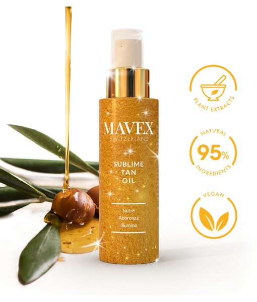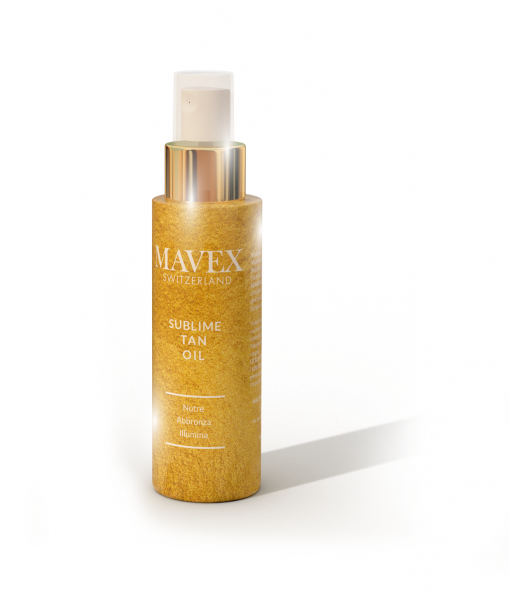 Odpowiedni dla każdego rodzaju skóry, Sublime Tan Oil szybko się wchłania i nie jest tłusty. Można go stosować przez cały rok, zimą i latem, na twarz, ciało i włosy, samodzielnie lub w połączeniu z kremem Mavex, aby uzyskać niezwykłą miękkość.